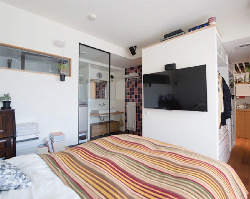 这间公寓居住空间不仅小,同时是不方正的L 型格局,因此居住在里头的这对夫妻舍弃了客厅区。