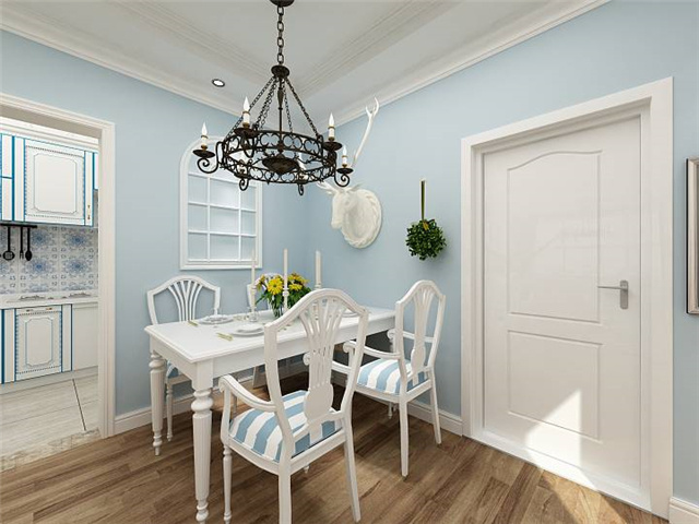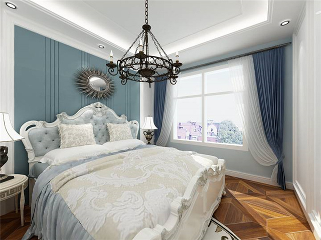 硬包背景,混油工艺,拼花地板,一白一蓝相互呼应,没有复杂的沉重,只有简约的轻快明亮,在这里保证舒适的睡眠和休息娱乐。