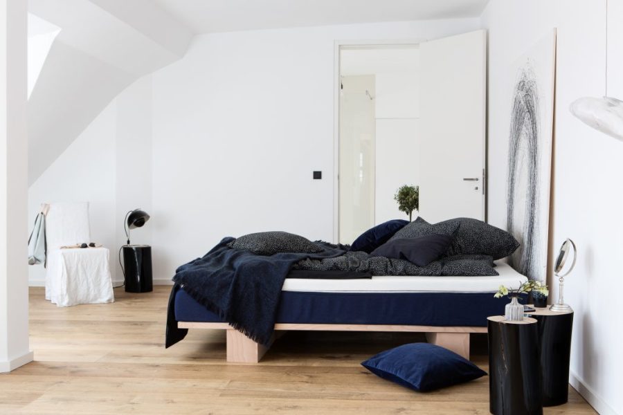 卧室显得舒适明亮,甚至在睡眠区也可以阅读或是处理其他的工作。