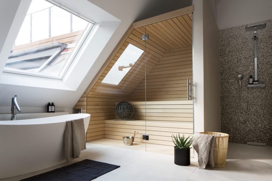 小型的 SPA 浴室让顶楼公寓俨然成为繁忙大城市的避风港。