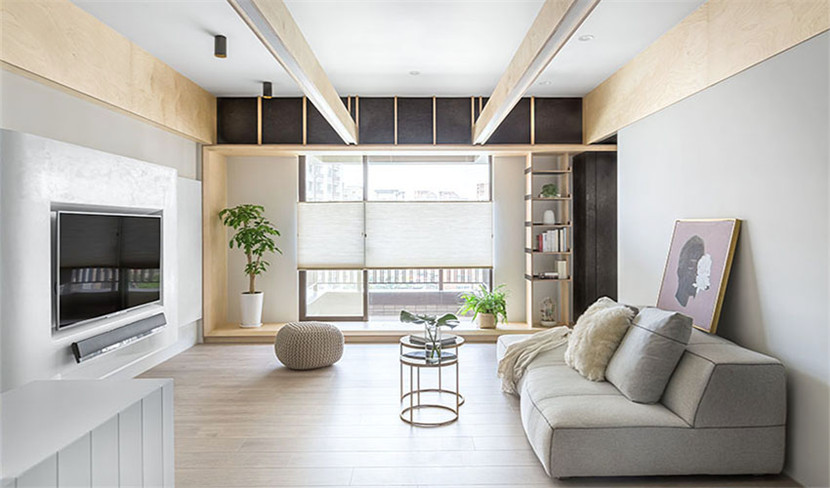 利用北欧清爽色系为基本色调,于窗框、天花板梁柱大量使用桦木材料。