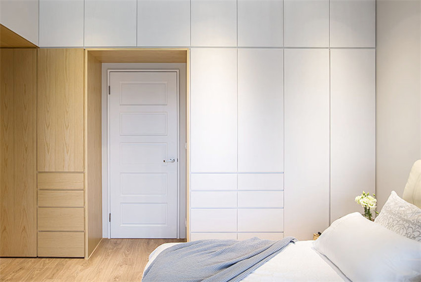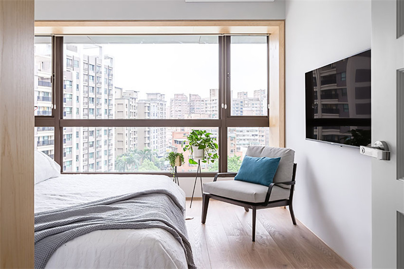卧房以简单功能为主,通过白色与木头色系搭配,呈现耐看简朴调性。