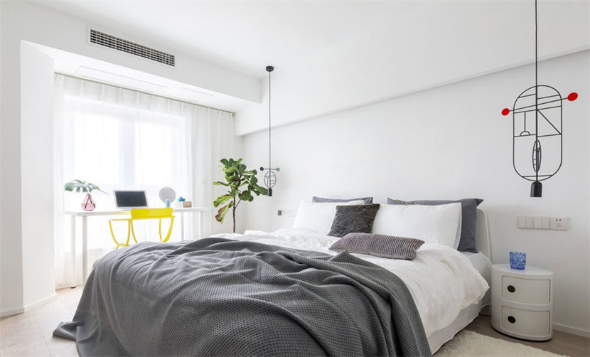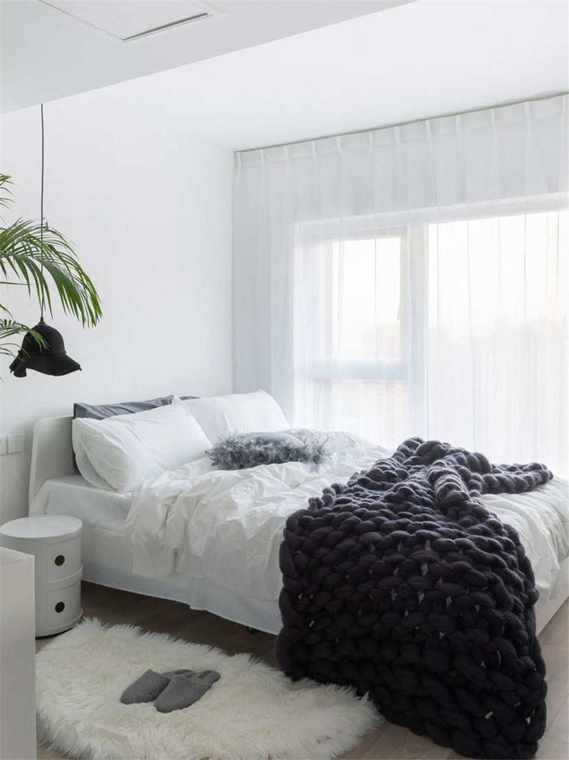 主卧采用了简单的北欧灰白色系,回归自然,营造出一种舒适、宁静的氛围,简单、自然让身心得到放松,有助于促进高质睡眠。