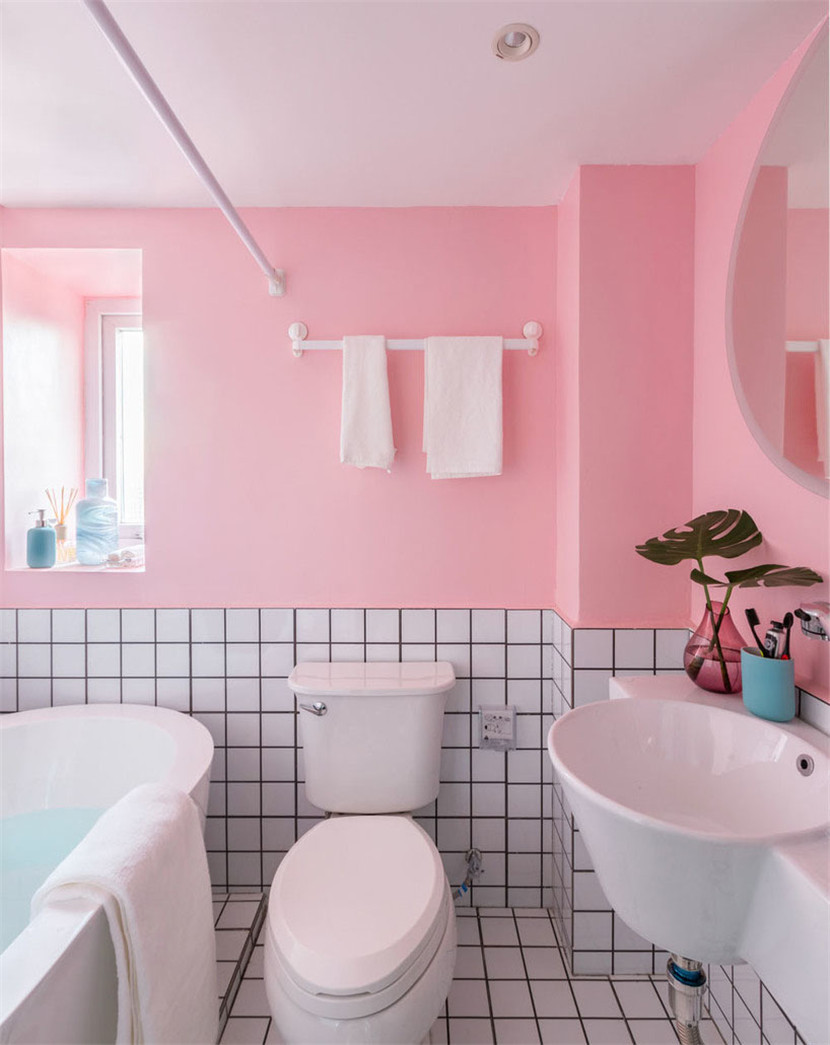 粉红色卫生间,给人一种甜美可爱的感觉,充满梦幻、浪漫的气息。
