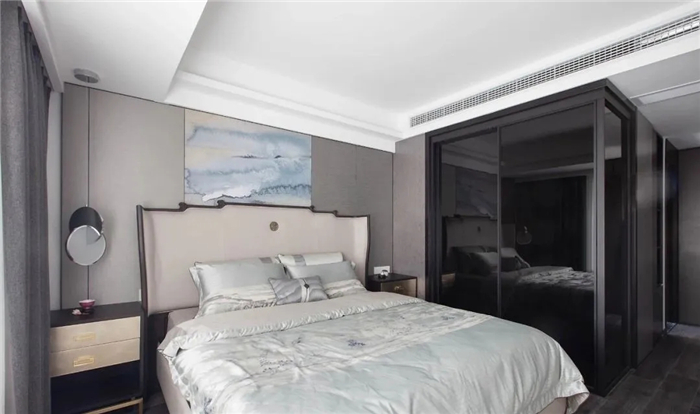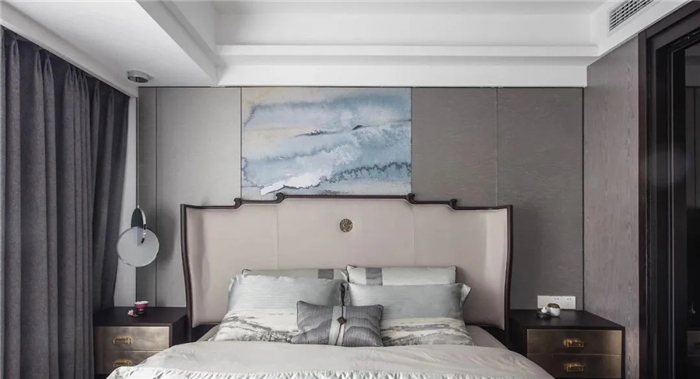 主卧黑白灰的主色调里,轻柔的米色自带宜人的安逸感