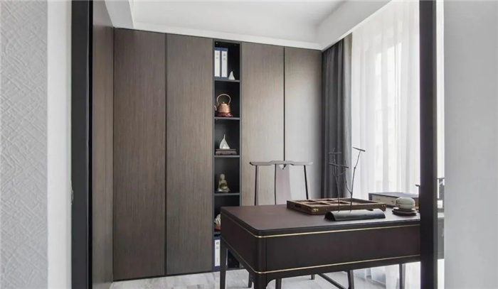 书房高级质感的书柜与书架上将收藏品与书籍妥善安置,还室内一片整洁之感