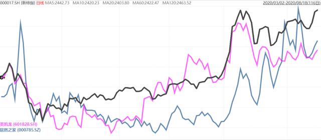 美凯龙、居然之家、上证指数近期走势图