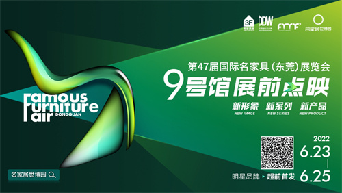 「第47届国际名家具(东莞)展览会 9号馆· 展前点映」将于6月23日~25日晚 19:00~22:00 和全国经销商在线上见面,比线下展览提前了一个月。